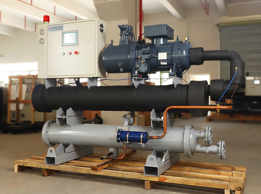 深創億牌螺桿式冷水機的冷凝器使用高效外螺紋銅管加工成梯形低助管,增強傳熱能力,散熱量大,體積小巧;銅管內表面光滑,使水壓降低,易清洗保養。運用CAD/CAM加工技術,配合CNC加工中心制作完成,結構緊湊,可靠性高,外形美觀,高效節能。